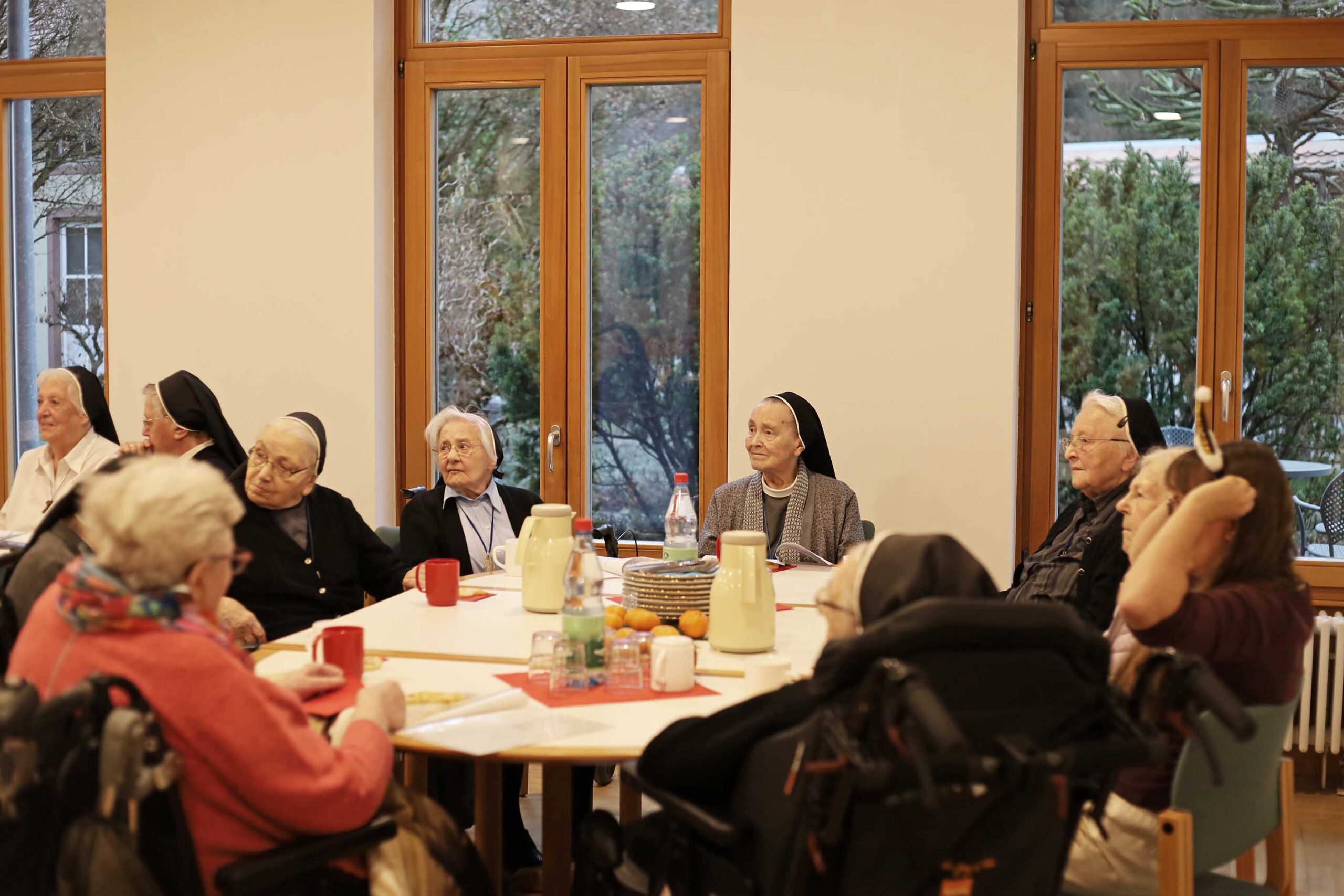 Wöchentlich lädt die Ehrenamtliche Christine Reitmeier zum gemeinsamen Singen ein. Gerade in der Adventszeit wecken die vertrauten Lieder schöne Erinnerungen. Beim Schmücken des Adventskranzes oder des Weihnachtsbaums helfen alle mit. Ein besonderes Element ist dabei die wachsende Krippe von Sr. Margot Schmitt: Sie wird nach und nach um eine neue Figur oder Szene ergänzt – bis am Heiligen Abend das Jesuskind in der mit Stroh gefüllten Krippe liegt.