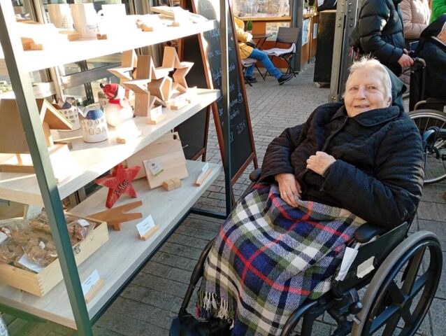 Weil ein Besuch auf dem Weihnachtsmarkt für viele nicht möglich ist, brachte das Team den Markt mitten ins Haus. An einem der Adventswochenenden verwandelten sich Gänge und Gemeinschaftsräume in eine festlich geschmückte Flaniermeile. An kleinen Ständen gab es selbstgebackene Waffeln, Kaffee, Eierpunsch und Gebäck. Zum Abschluss sangen alle gemeinsam Advents- und Weihnachtslieder.