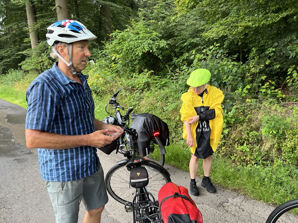 Nach der Übernachtung in Höchst und einer kurzen Andacht im Klosterhof der Burg Breuberg begann der zweite Tag der Tour. Gestärkt machten sich die Radfahrer:innen auf den Weg nach Bad König und erklommen ihren ersten größeren Anstieg. Auf dem Weg nach Amorbach erlebten sie eine überraschende Begegnung mit einer Oldtimer-Rallye, die für eine nostalgische Atmosphäre sorgte, als zahlreiche liebevoll restaurierte Fahrzeuge an ihnen vorbeifuhren.