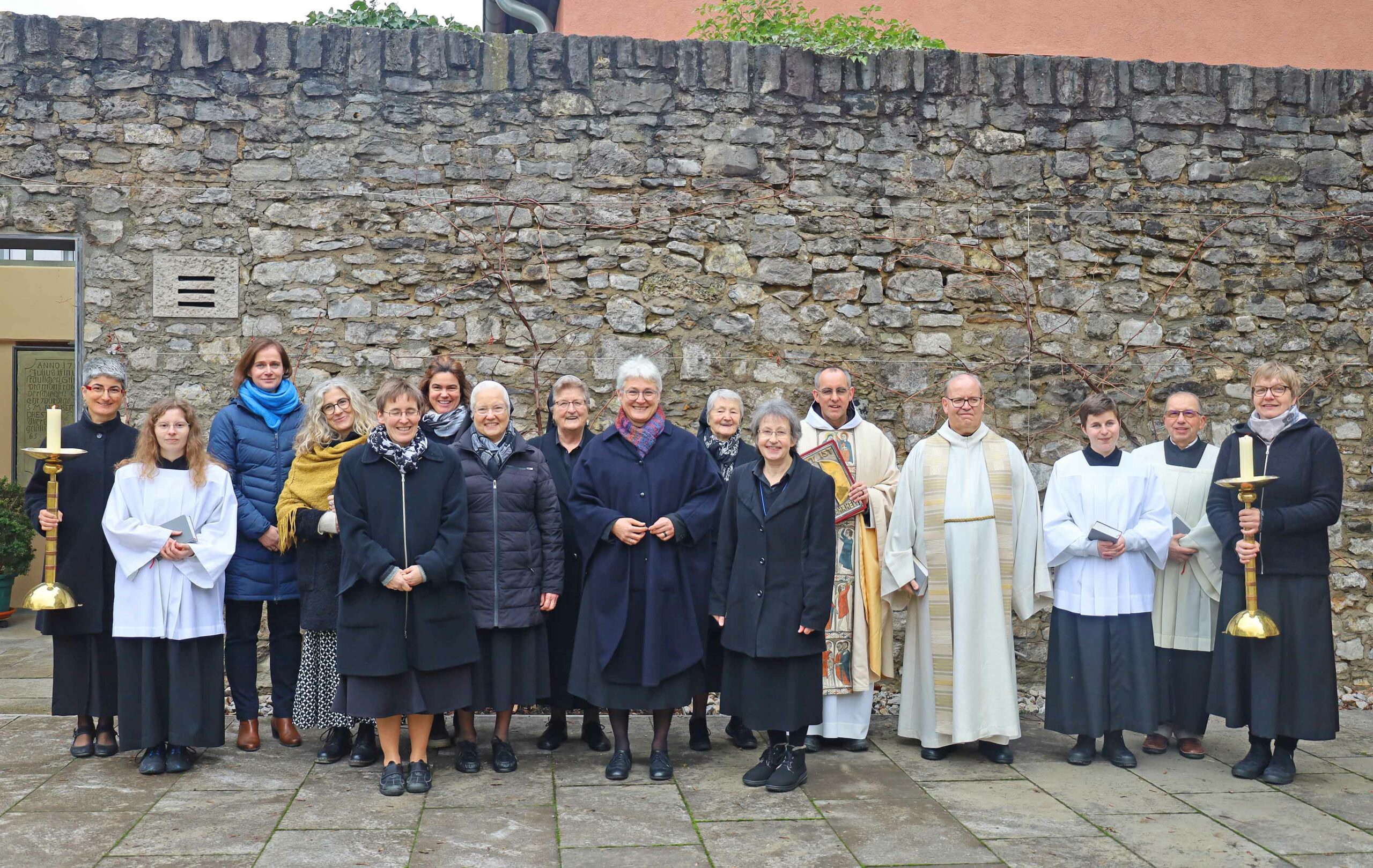 Sr. Rut Gerlach, die als Generalvikarin die Begrüßung übernahm, schilderte zu Beginn des Gottesdienstes die bisherigen Stationen und Ämter der Jubilarin. Da das Professjubiläum auf den Dreikönigstag fiel, zog sie dabei einige Parallelen. Sr. Katharina habe vor 25 Jahren dem Stern ihrer Sehnsucht vertraut und sich durch ihre Profess an Gott und die Gemeinschaft gebunden. Nach ihrer Erstprofess 1999 führte sie ihr Weg ins Haus Antonia Werr, wo sie als Sozialpädagogin junge Frauen in prekären Lebenssituationen, darunter Opfer von Menschenhandel und Zwangsprostitution, unterstützte und begleitete. Zudem übernahm sie die Rolle der Öffentlichkeitsbeauftragten der Gemeinschaft.