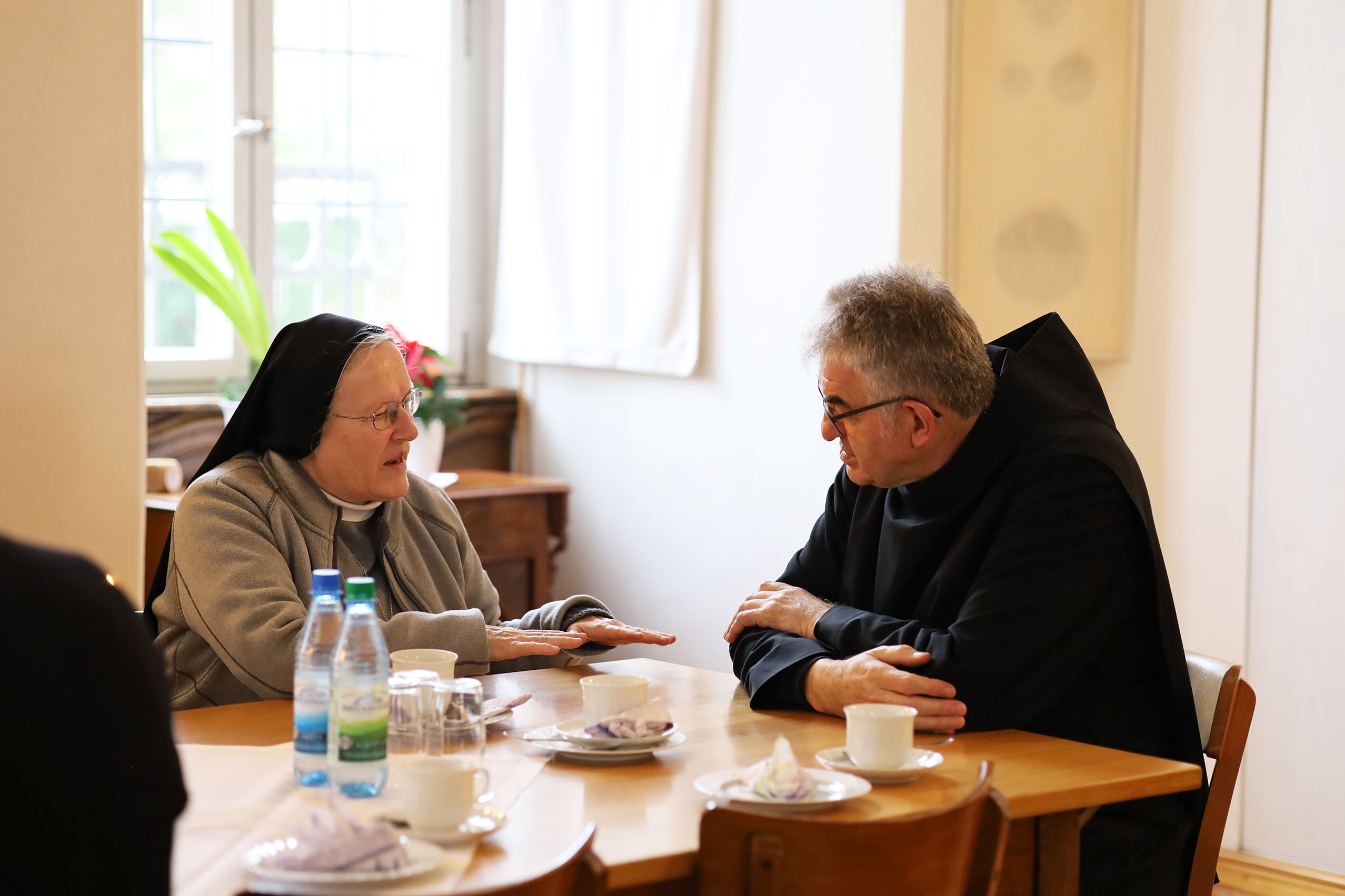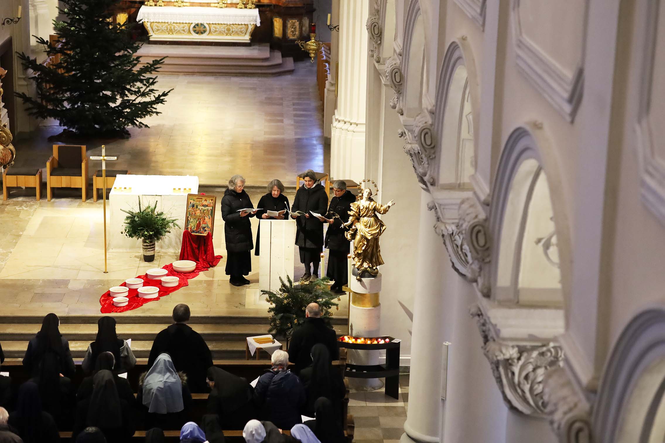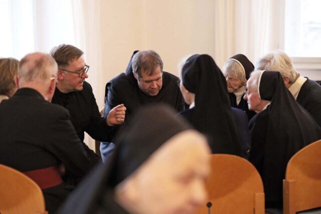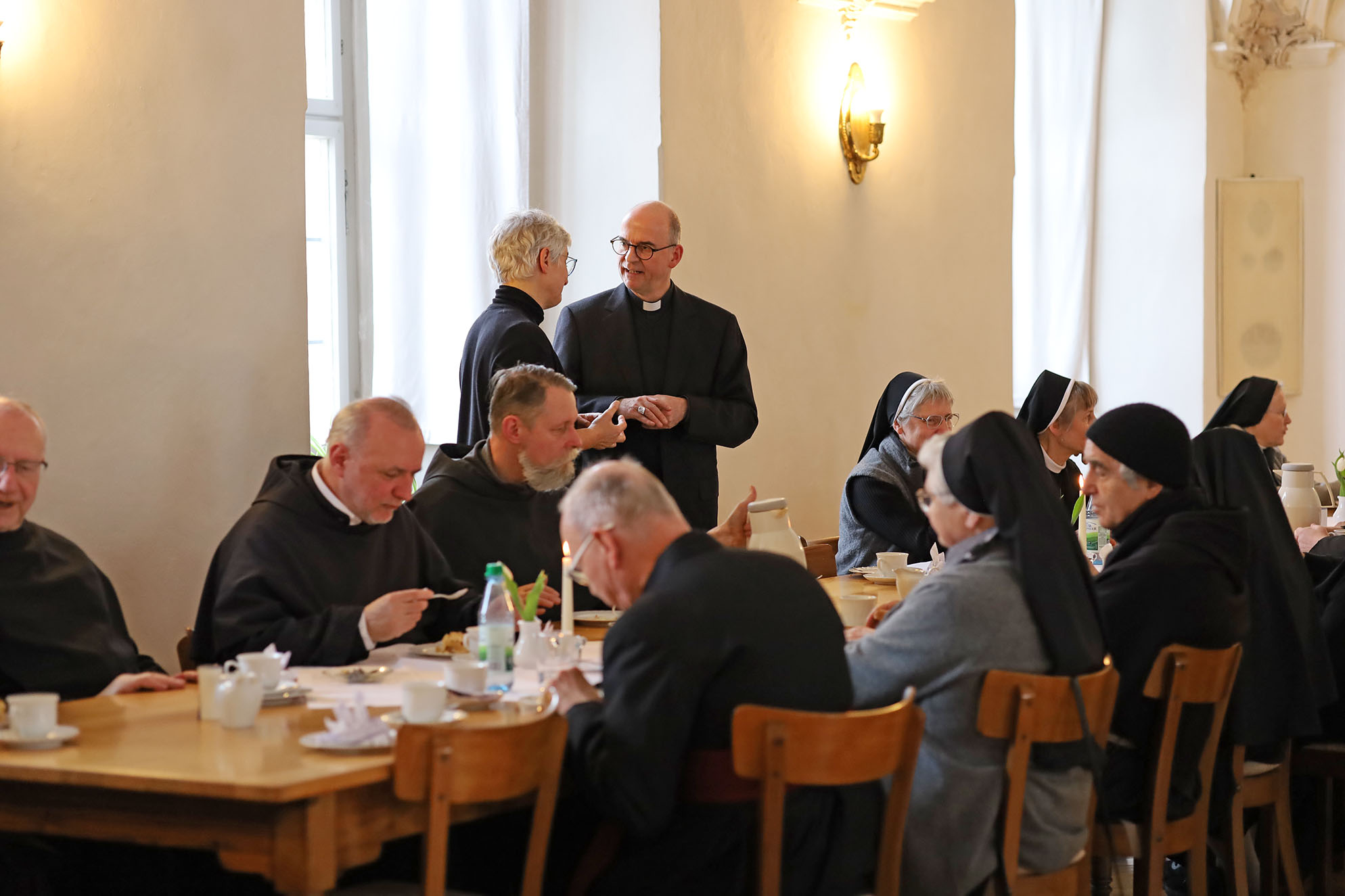 Den Abschluss des Tages bildete die gemeinsame Vesper in der Klosterkirche. In seinem geistlichen Impuls hob Bischof Dr. Franz Jung das Loslassen als zentrales Motiv des Evangeliums von der Darstellung des Herrn (Lk 2,22–40) hervor. Dieses Loslassen, so der Bischof, zeige sich in verschiedenen Lebensaltern – beim Jesuskind, bei Maria sowie bei Simeon und Hanna. Es sei ein Ausdruck tiefen Vertrauens.