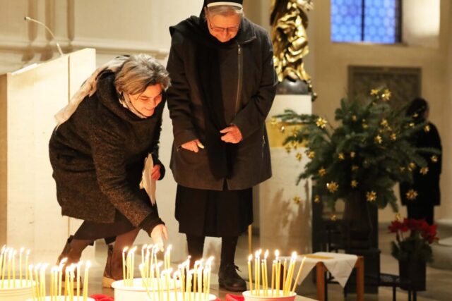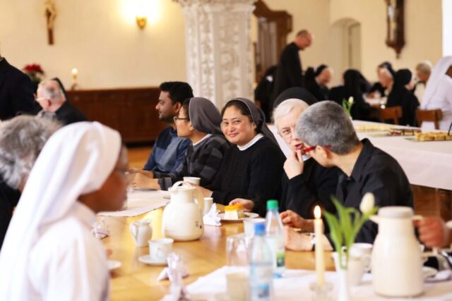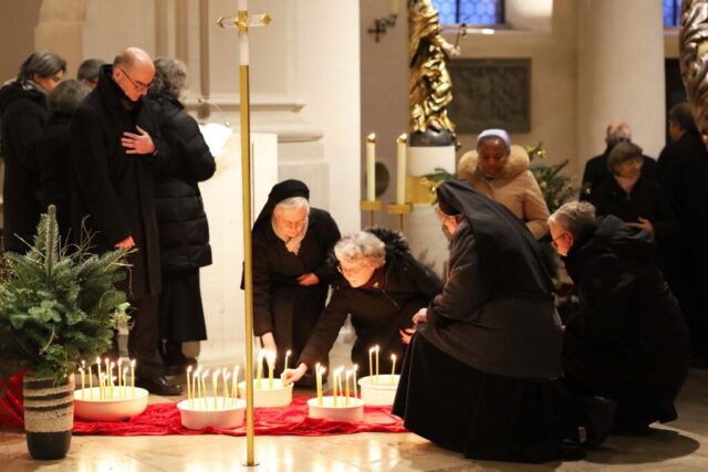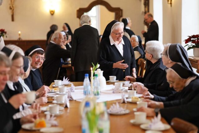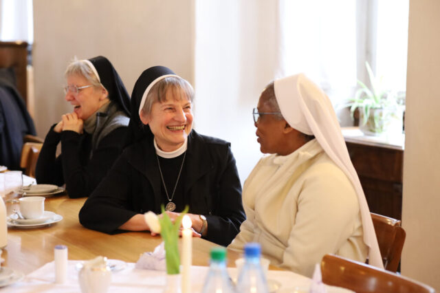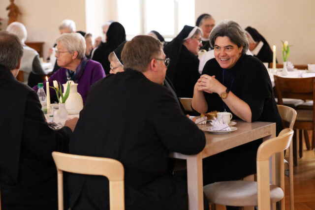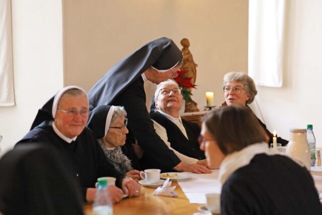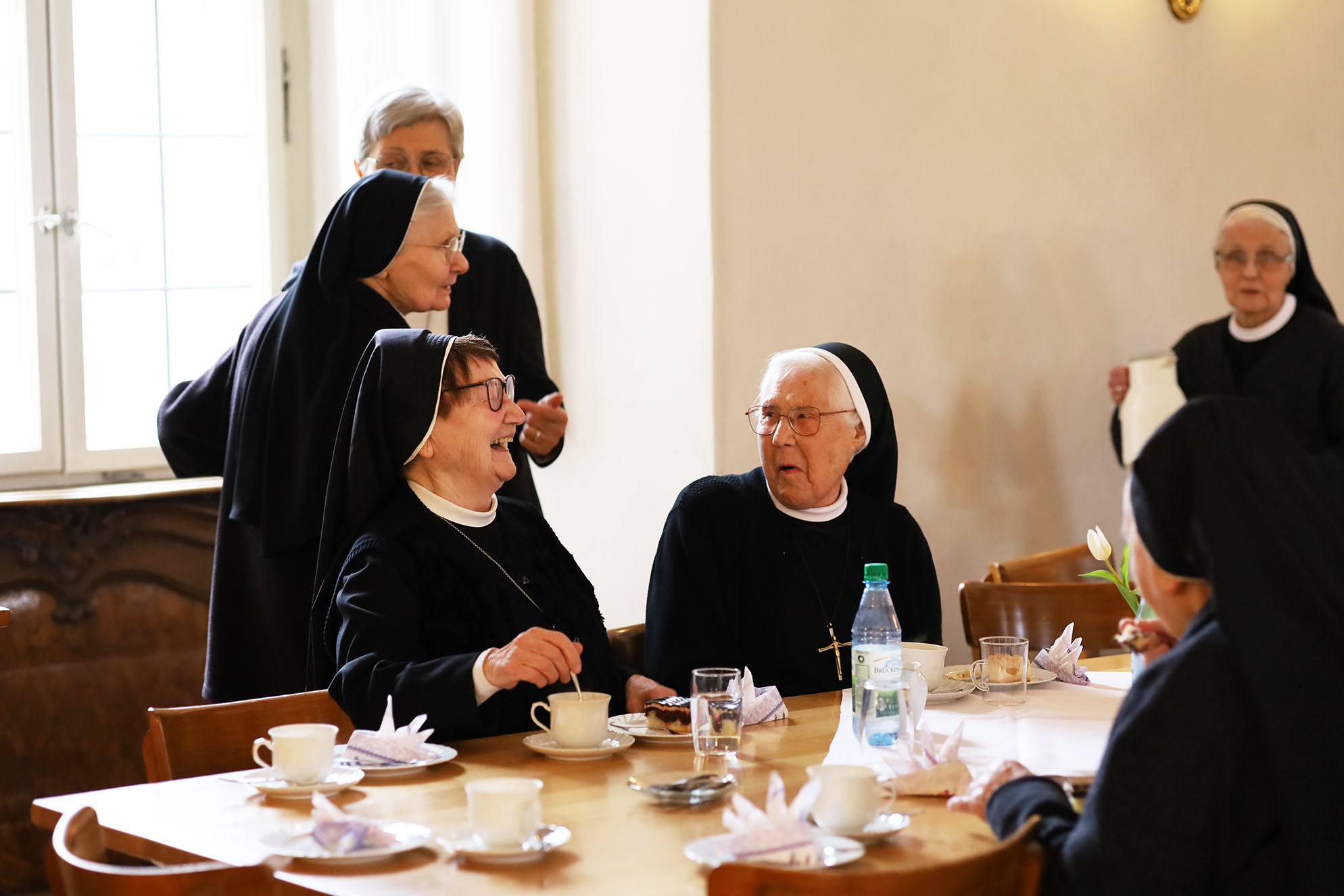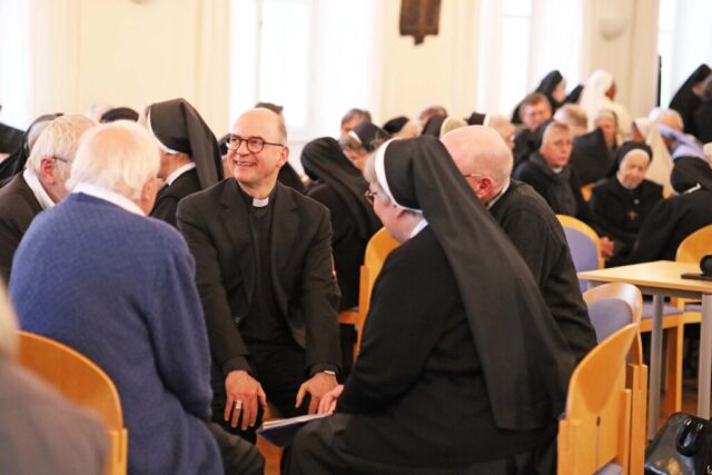 Den Abschluss des Tages bildete die gemeinsame Vesper in der Klosterkirche. In seinem geistlichen Impuls hob Bischof Dr. Franz Jung das Loslassen als zentrales Motiv des Evangeliums von der Darstellung des Herrn (Lk 2,22–40) hervor. Dieses Loslassen, so der Bischof, zeige sich in verschiedenen Lebensaltern – beim Jesuskind, bei Maria sowie bei Simeon und Hanna. Es sei ein Ausdruck tiefen Vertrauens.